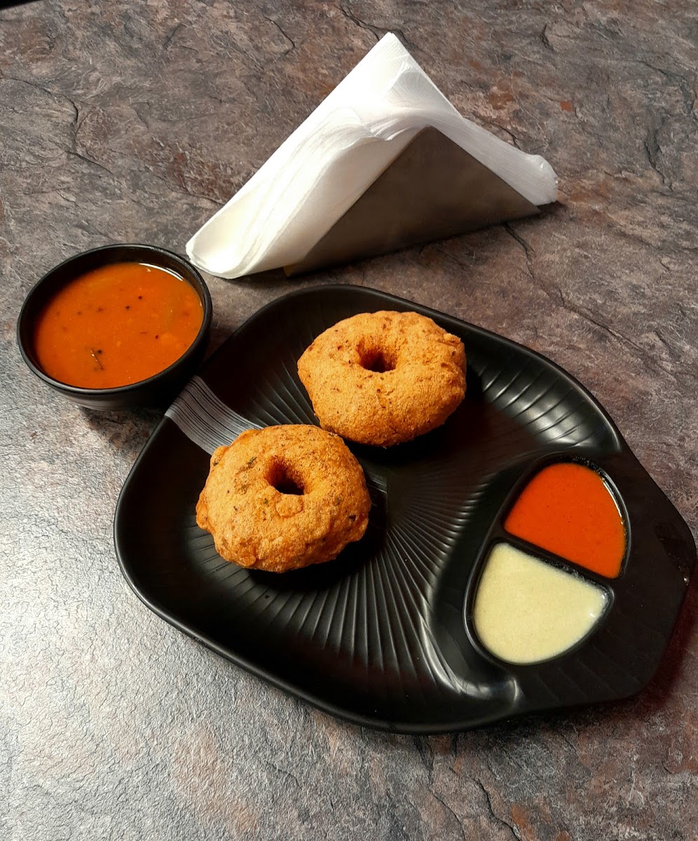 Sambar Vada: A crispy, golden fried doughnut-shaped vada served with a rich, spicy sambar, this dish is a must-have for those who enjoy deep-fried snacks.